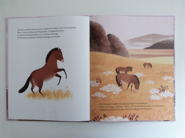 Pamir est un cheval de Przewalski, la dernière race de chevaux sauvages au monde, originaire de Mongolie. Pour sauver l’espèce menacée une cinquantaine de poulains ont été placés dans des zoos, notamment la Ménagerie du Jardin des plantes où l’on peut voir des chevaux de Przewalski depuis plus de 100 ans. C’est ici qu’est né Pamir. Il a ensuite été envoyé en Lozère afin de se réhabituer à la vie sauvage, puis ce sont ses enfants qui sont repartis sur la terre de leurs ancêtres, dans les steppes de Mongolie. Un album passionnant sur une race méconnue, qui permet de découvrir la sauvegarde d’une espèce menacée et sa ré-acclimatation à la vie sauvage.